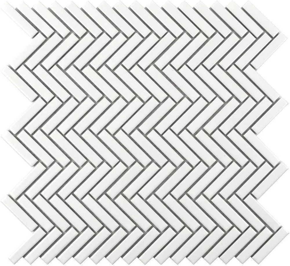 Tenedos White Porcelain Herringbone Mosaic Tile brings a clean, modern aesthetic to any interior space. Each 11x12-inch sheet is crafted with elegant 1/2 x 2-inch porcelain brick pieces arranged in a precise herringbone pattern, creating a dynamic visual flow that enhances both small and large areas. The refined, narrow brick layout adds texture and architectural movement, making it suitable for contemporary and classic designs alike. Made from premium porcelain, this mosaic provides excellent resistance to moisture, stains, and heat, ensuring long-lasting performance in bathrooms, showers, kitchen backsplashes, laundry rooms, accent walls, and other indoor applications. The glossy finish reflects light beautifully, brightening any space while offering an easy-to-clean, hygienic surface. Mesh-backed sheets allow quick and accurate installation for both DIY enthusiasts and professionals. Available in 1 sheet for samples or 10-sheet value packs for full installations, this mosaic tile is ideal for remodeling or new projects. Whether you're upgrading a small feature area or covering a larger wall surface, the Tenedos White Porcelain Herringbone Mosaic Tile delivers timeless elegance, durability, and high-end visual appeal.