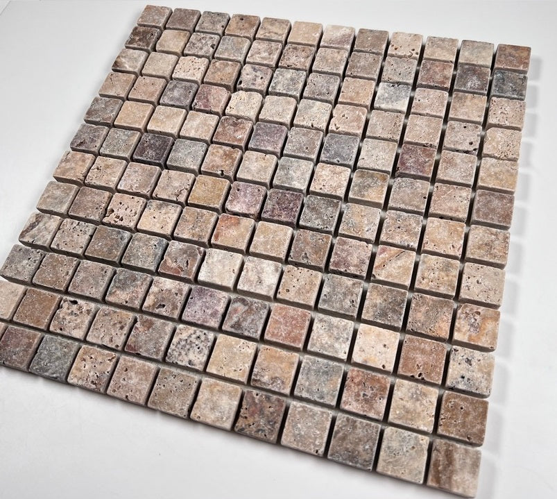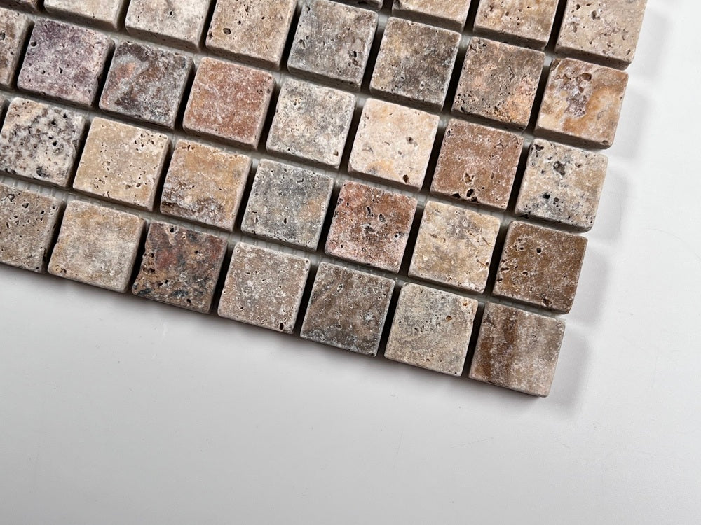 Scabos Travertine Tumbled Square 7/8 Inch Marble Floor and Wall Tile for Kitchen Backsplash, Bathroom Walls, Accent Wall, Swimming Pool, Fireplace Surround