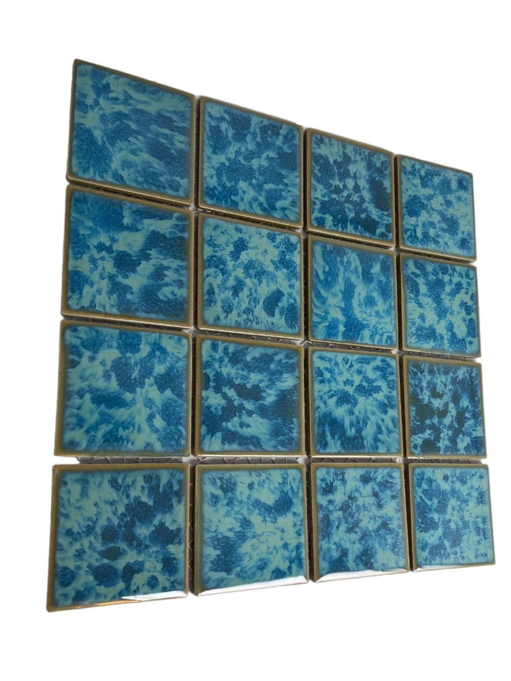 Tenedos TBHMD-3x3-PL Ocean Green Jellyfish Square Square 3x3 Porcelain Pool Mosaic Floor and Wall Tile for Backsplash, Kitchen, Bathroom, Swimming Pool
