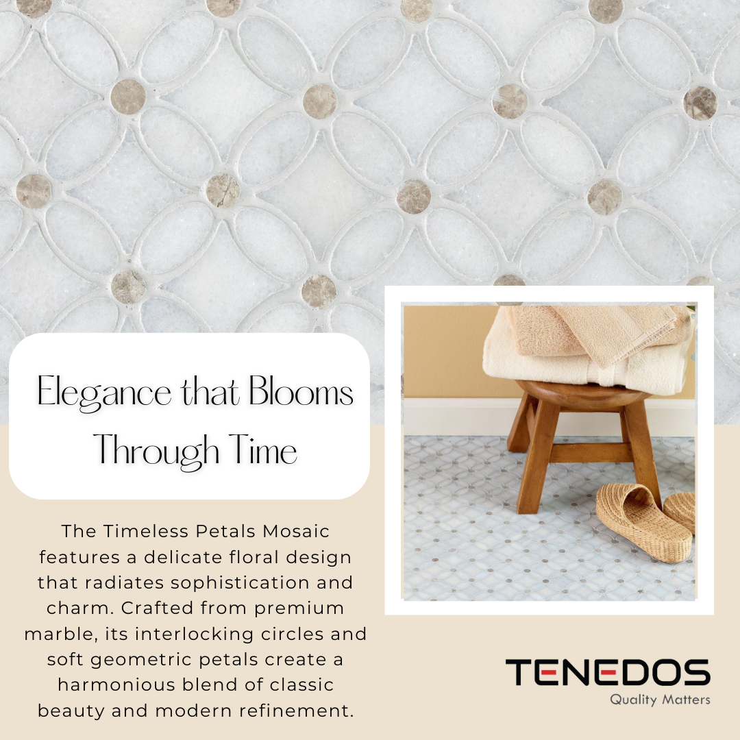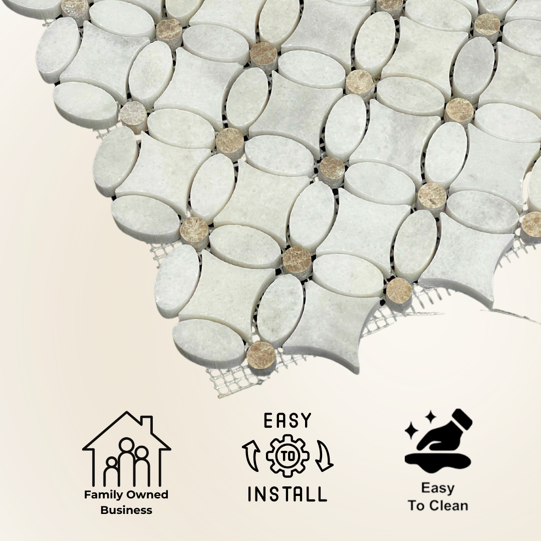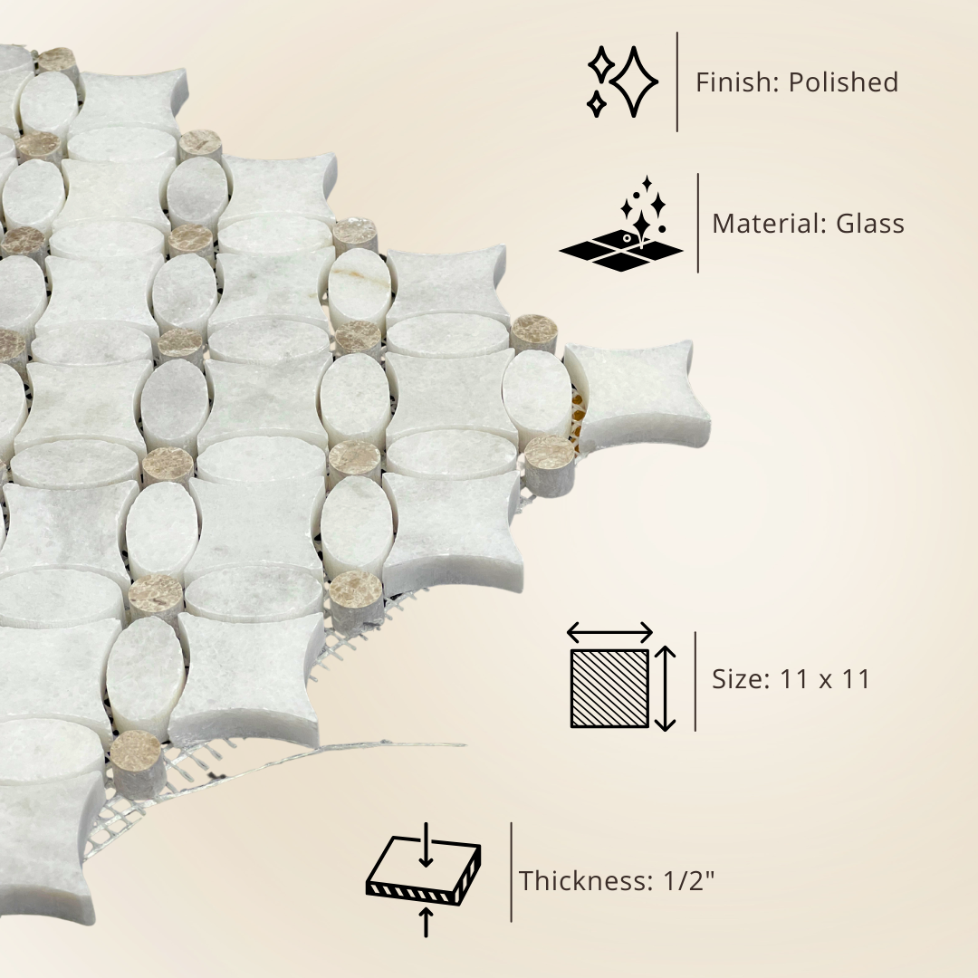 Elevate your space with the Tenedos HTC182 Timeless Petals Mosaic Tile. This 11 x 11-inch decorative tile, featuring a polished high-gloss finish, embodies refined elegance. Made from premium white marble sourced from Turkey, this mosaic offers a timeless, sophisticated design. Its intricate flower pattern adds depth and texture, making it perfect for creating striking interiors. Whether for a kitchen backsplash, bathroom floor, or shower wall, this tile ensures both practicality and beauty.