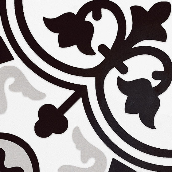 Transform your space with this stunning black and white floral pattern tile, accented with soft gray details for a timeless European charm. 🛁✨