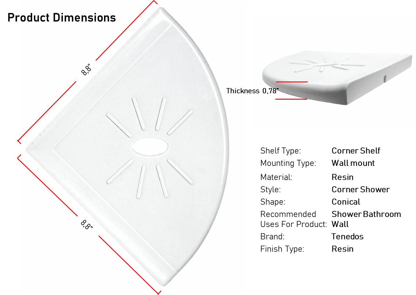 Tenedos White Resin Corner Bathroom Shower Shelf Flatback Wall Mounted