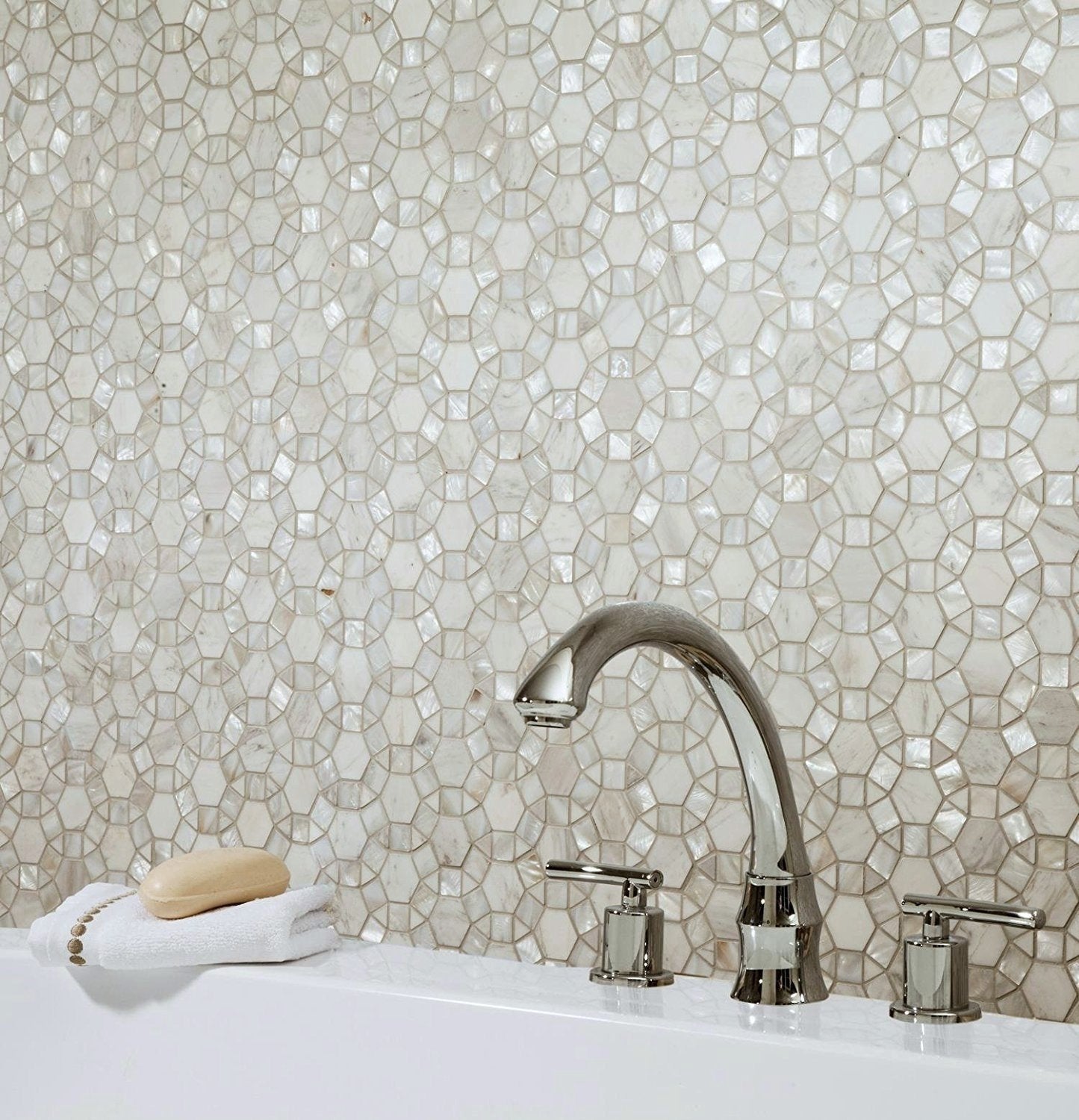 • Mother of Pearl Tiles Mixed with Thassos Marble- Finished: Polished, Sheet Size: 10in. x 10in. (Coverage 3.5 sq.ft)