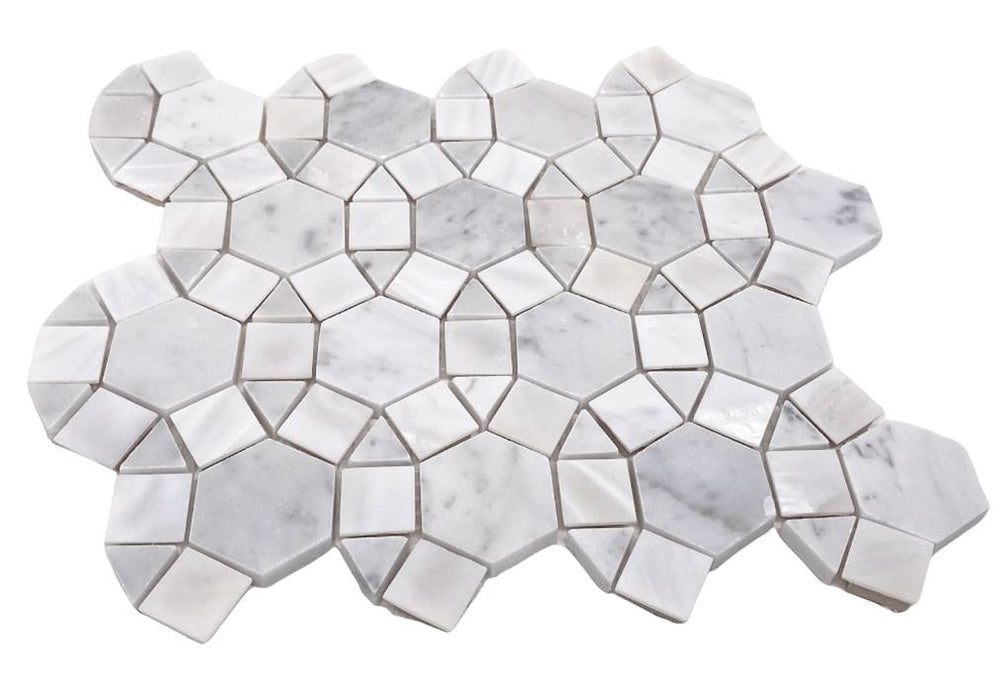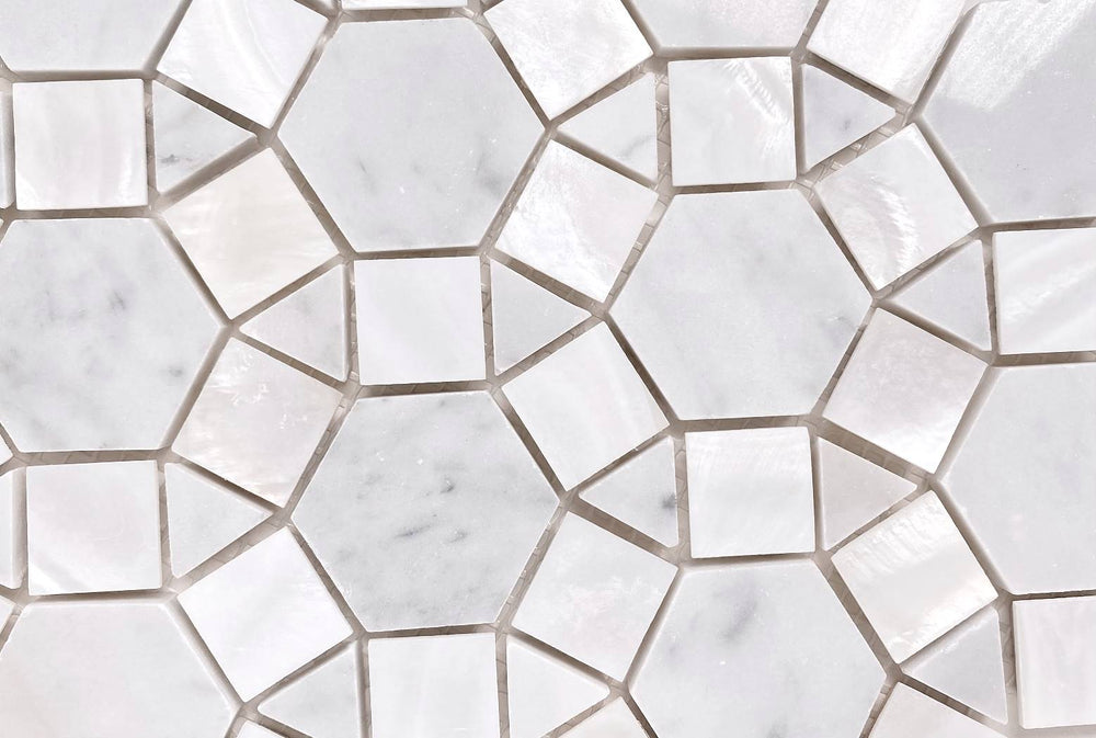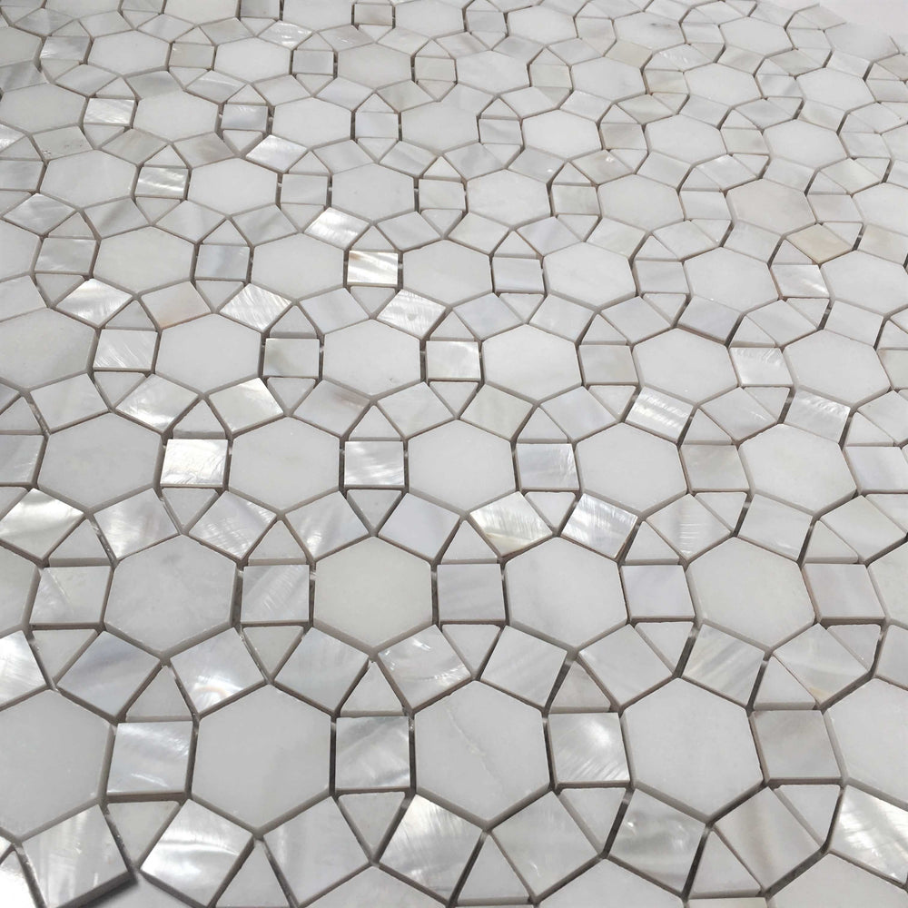 Thassos Hexagon Marble Tile With Circular Mother of Pearl Mosaic Tiles Mother of Pearl Tiles Mixed with...