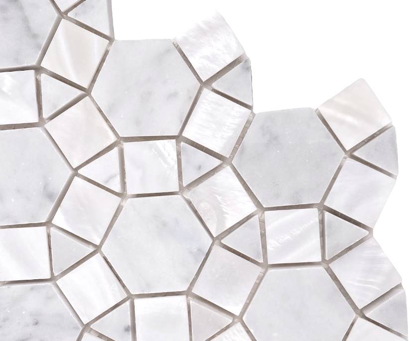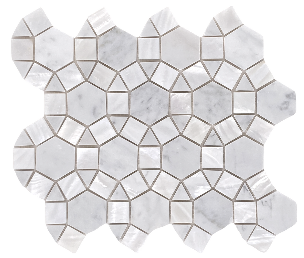 Thassos Hexagon Marble with Mix Circulos Mother of Pearl Tile On Mosaic Sheet