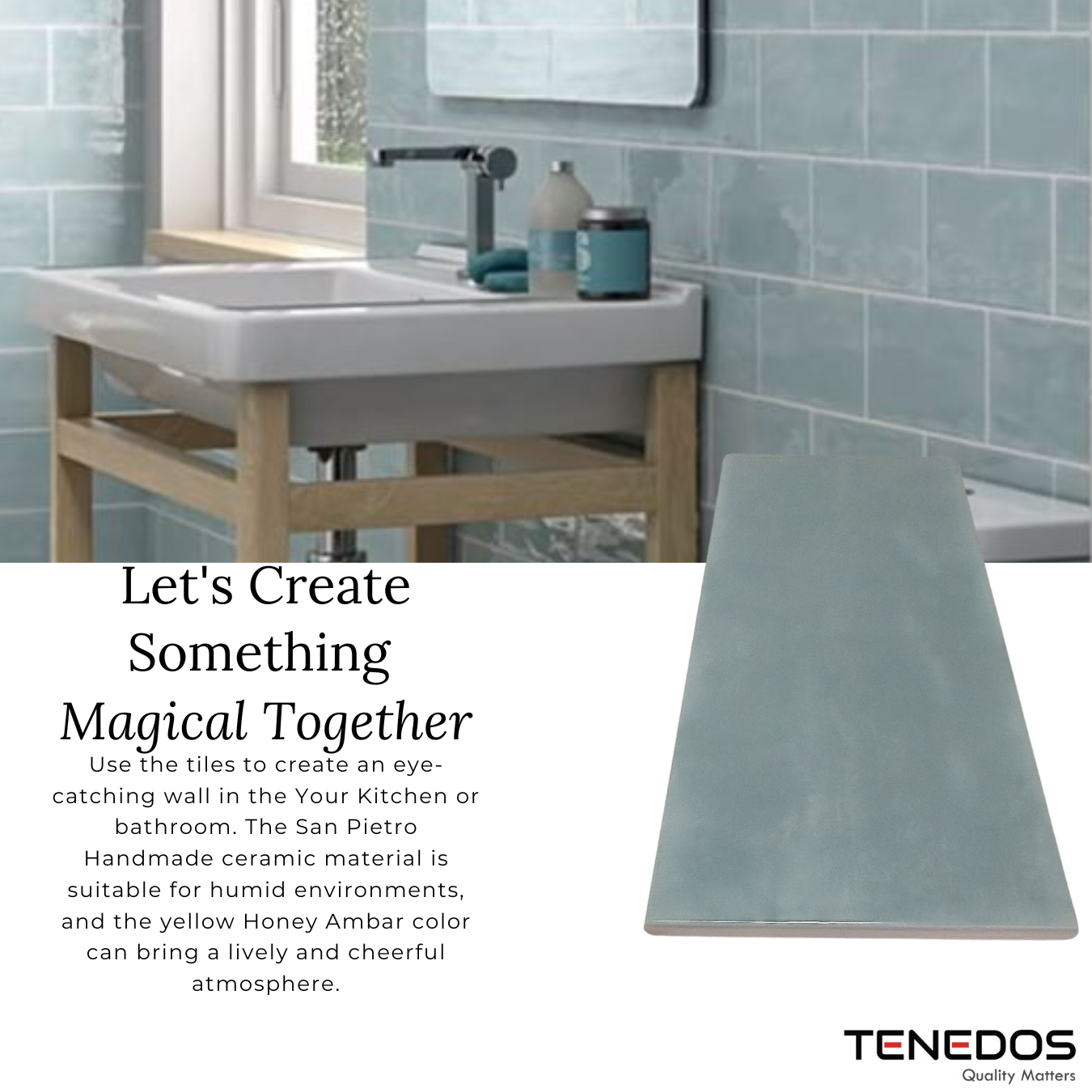 Transform your space with the TRCD-MLC-4X10 Santorini Blue Gray Ceramic Wall Tile. This glossy, 4 1/4x10 tile adds a subtle pop of color to any kitchen, bathroom, or fireplace. Its durable, ceramic material provides a long-lasting, easy to clean surface, making it perfect for both practical and decorative use.