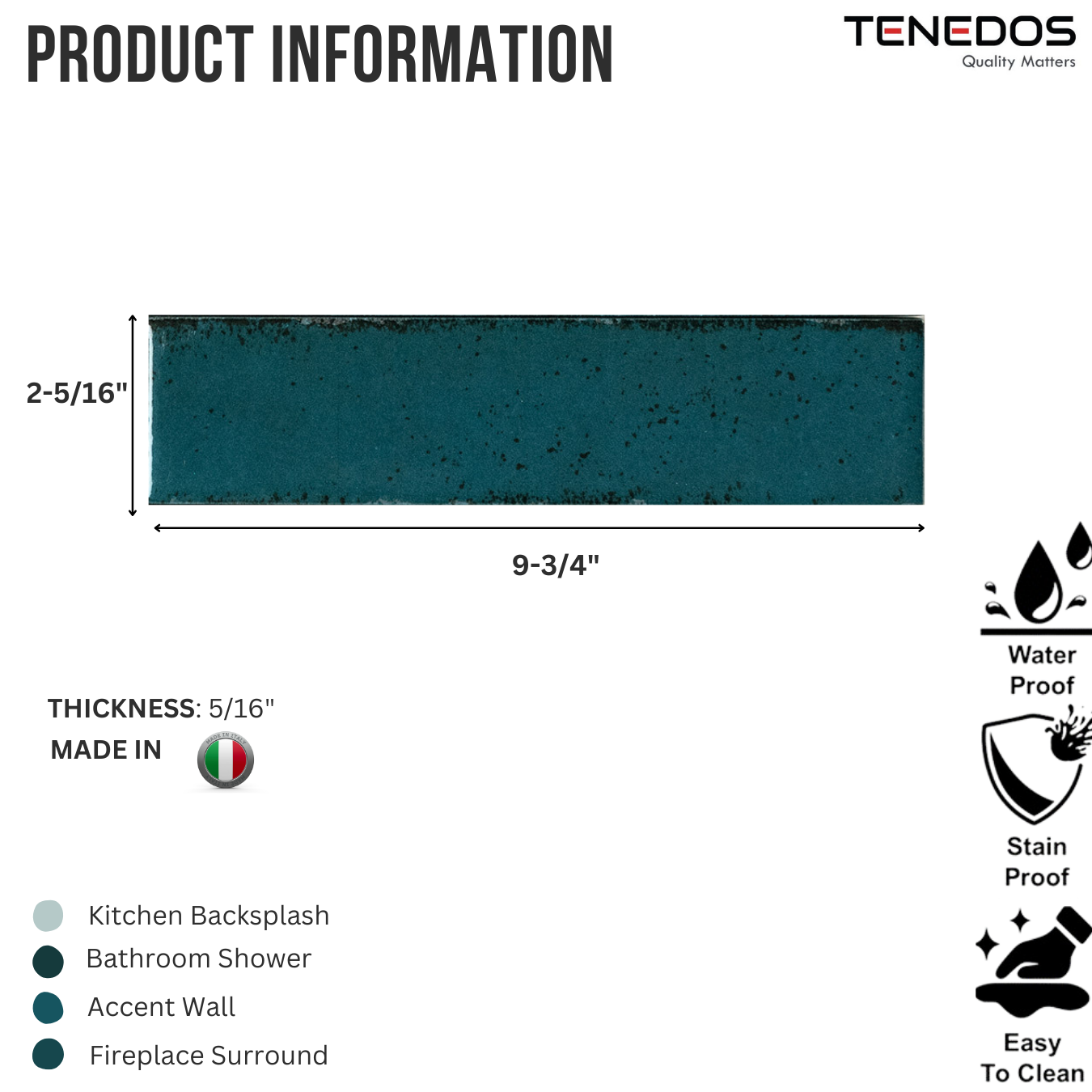 Experience the stunning beauty and durability of our TTTD-PRC-STR Amore 2x10 Dark Blue Handmade Bright Porcelain Wall Floor Tile. Made in Italy, these tiles are perfect for adding a touch of elegance to your kitchen, bathroom, fireplace, or any other room in your home. Crafted with precision and quality, these tiles are sure to elevate any space.