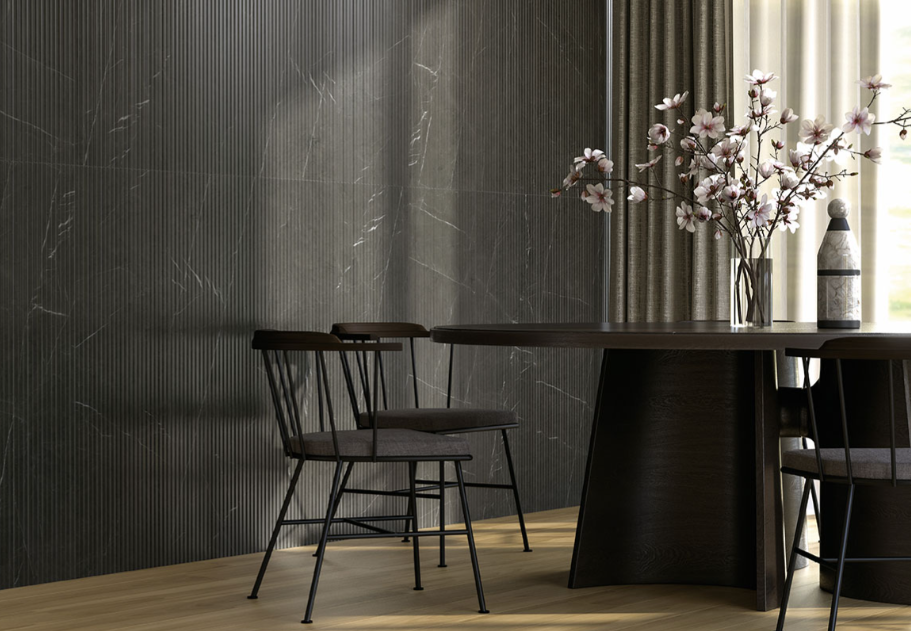 URBANSLAT MARMIRO NOIR  16 in. x 48 in. Matte Ceramic Fluted Wall Tile (15.5 sq. ft./Case)