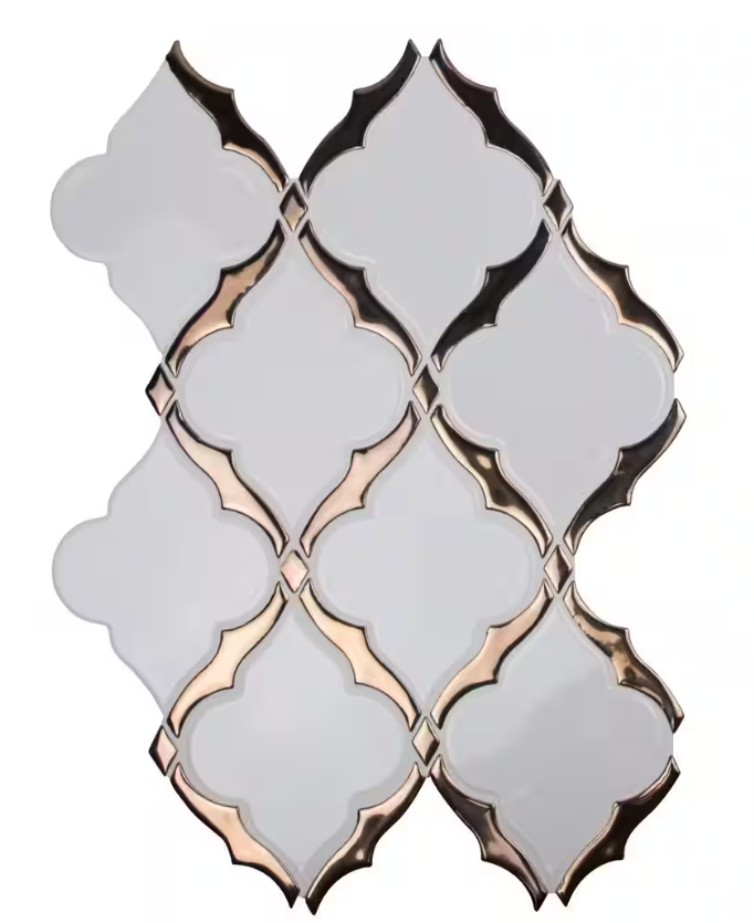 Victorian Light Arabesque Tile features an updated take on the iconic arabesque tile backsplash shape punctuated by petite diamonds. White tiles are contrasted by rich brown outlines for a look that makes an impact without overwhelming other design elements. The Moroccan tile backsplash can be installed in residential and some commercial projects where a touch of the unexpected is desired. This tile is Greenguard Indoor Air Quality Certified® and comes mounted on mesh-backed sheets for simplified installation and a professional finish.