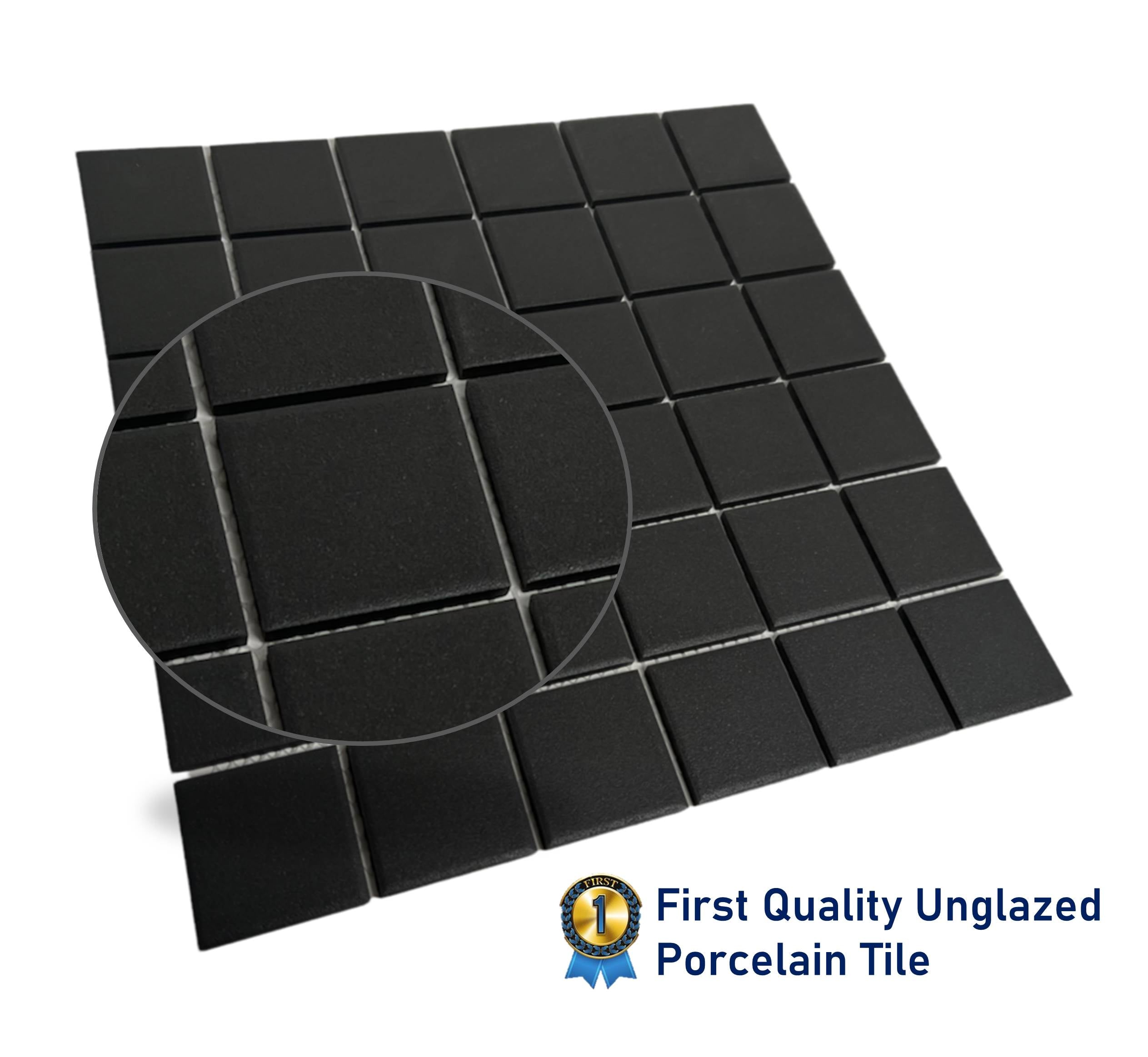 Unglazed Black porcelain mosaic is a non-glazed porcelain tile, suitable for areas exposed to potentially slippery conditions...