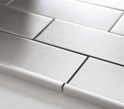 • For the Sheffield, steel brushed metal collection this metal Pencil Edger Trim provides a sleek, stylish, contemporary finished look to any installation.