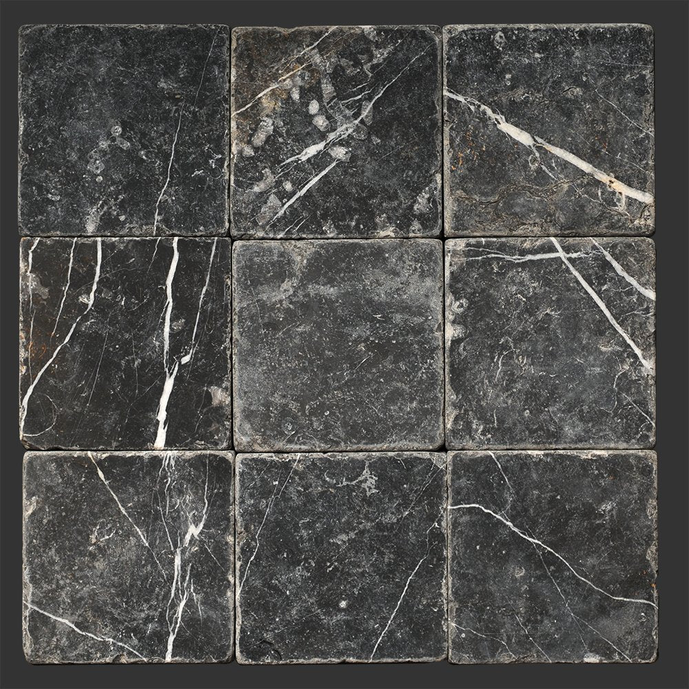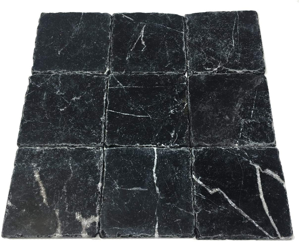 BLACK TAURUS/ BLACK MARBLE 4" X 4" TUMBLED TILE GROUND SHIPPING Surface Finish: TUMBLED (antiqued, matte finish)...