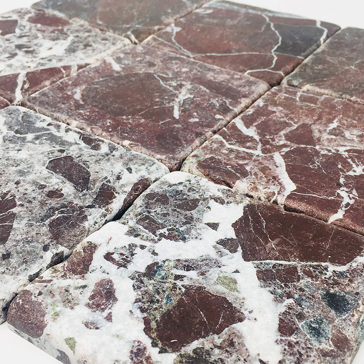 100% Marble Stone 4" x 4" Tumbled Marble Tile in Rosso Levanto, Rosso Marquina Marble Tile The...