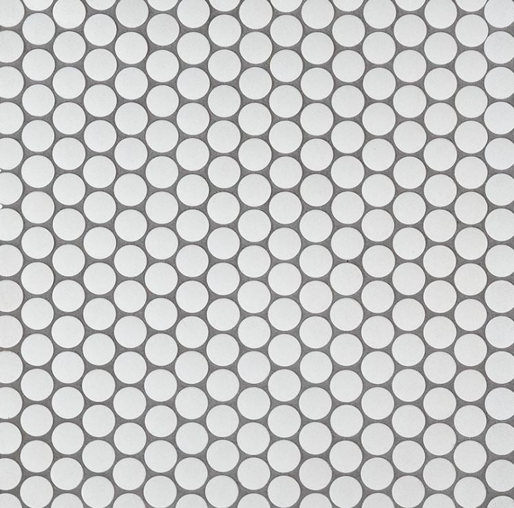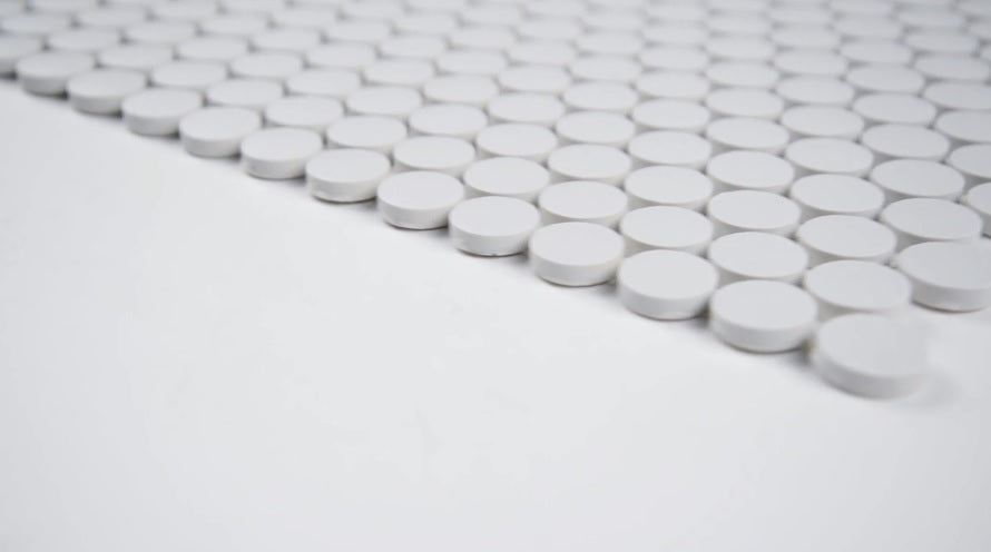 • Vogue Tile Unglazed White Penny Round Porcelain Mosaic ( 9.6 Sq. Ft. Per Case )