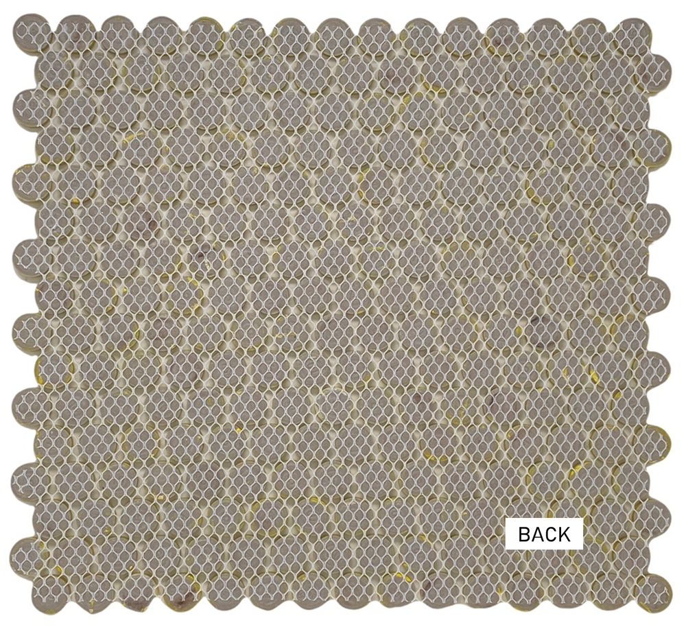 By Tenedos Premium Grade Mother of Pearl Sea Shell mosaic tile for floor and wall use. White Natural Mother of Pearl Sea Shell Mosaic Tile Individual tile sizes are 5/8" x 1 1/4". There are 144 individual mother of pearl tiles on every sheet. A...