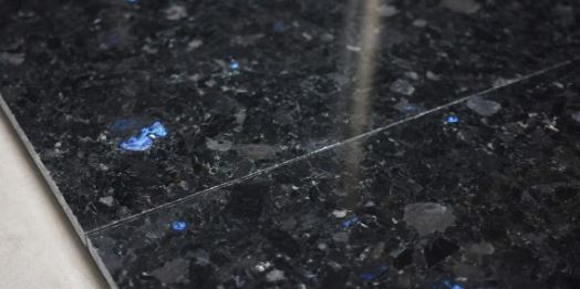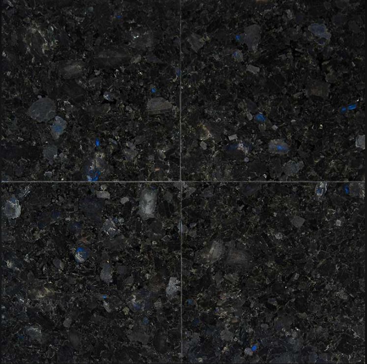 Deep Black and Spark Blue Dot Granite Flooring Bathroom Wall Backsplash Entrance Foyer Fireplace Kitchen Countertops - 12 x 12 Polished Tile