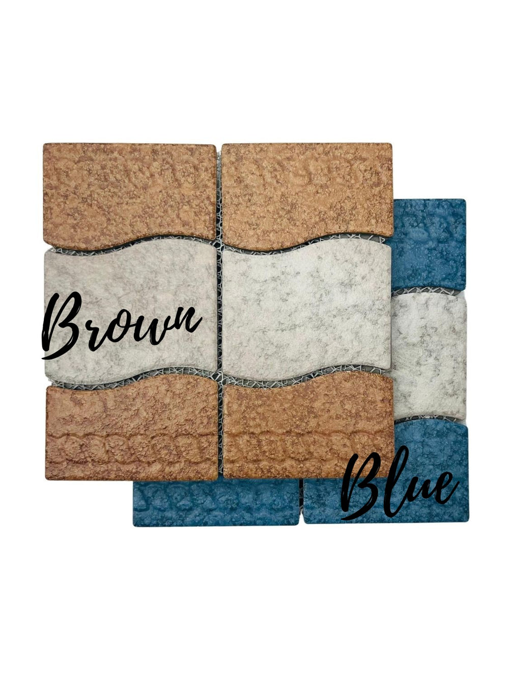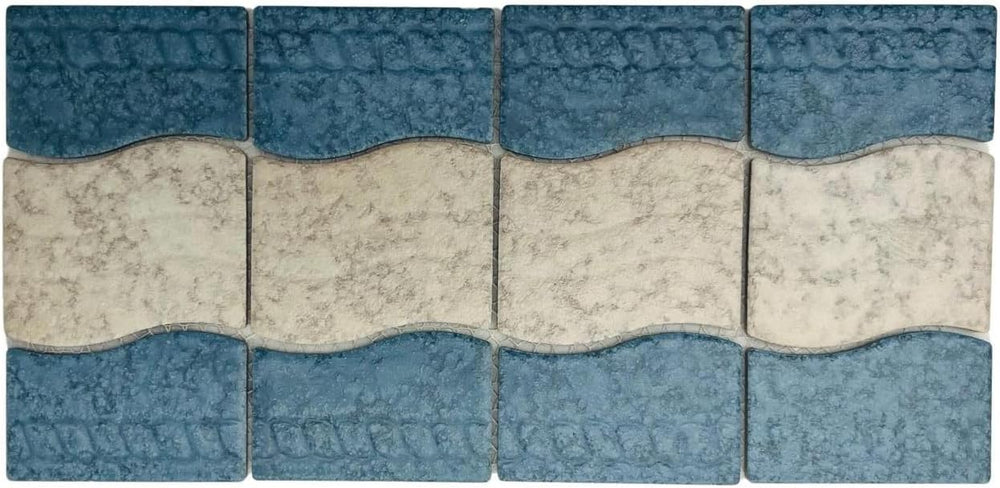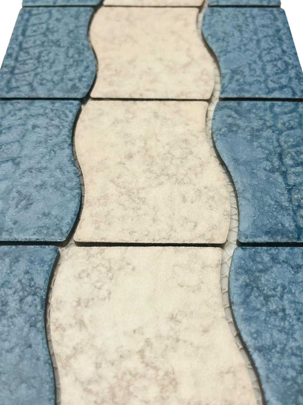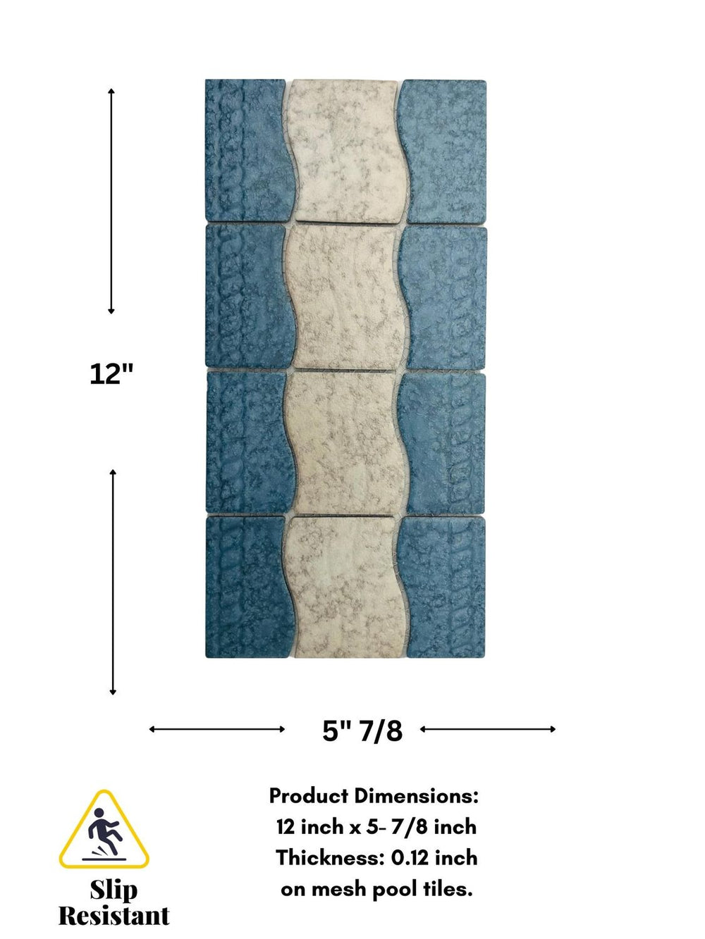 Wavy Almond and Blue Matte Porcelain Border Pool Wall and Floor Tile on 6x12 Mesh Mounted for Easy Installation for Bathroom, Backsplash, Kitchen