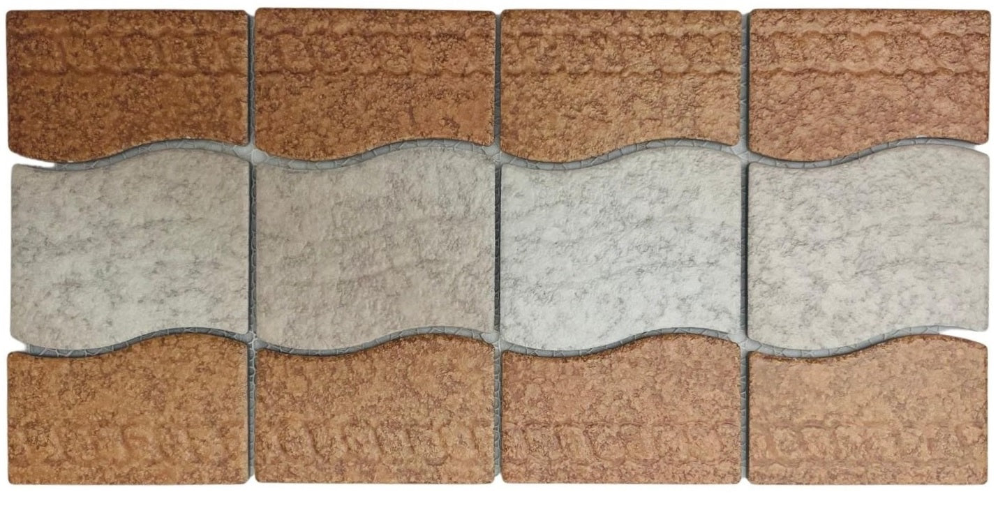 Wavy Almond with Tawny Brown Matte Porcelain Border Pool Wall and Floor Tile on 6x12 Mesh Mounted for Easy Installation for Bathroom, Backsplash, Kitchen
