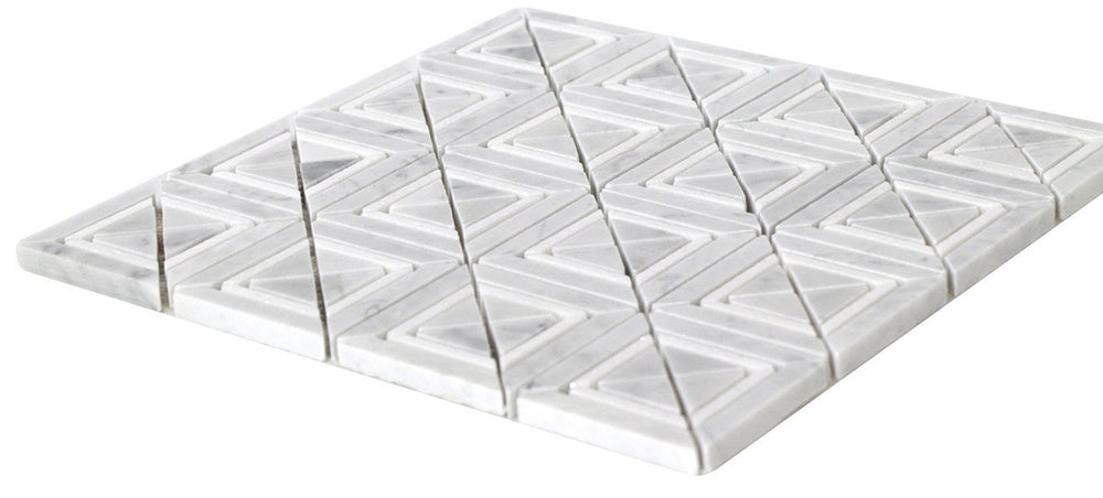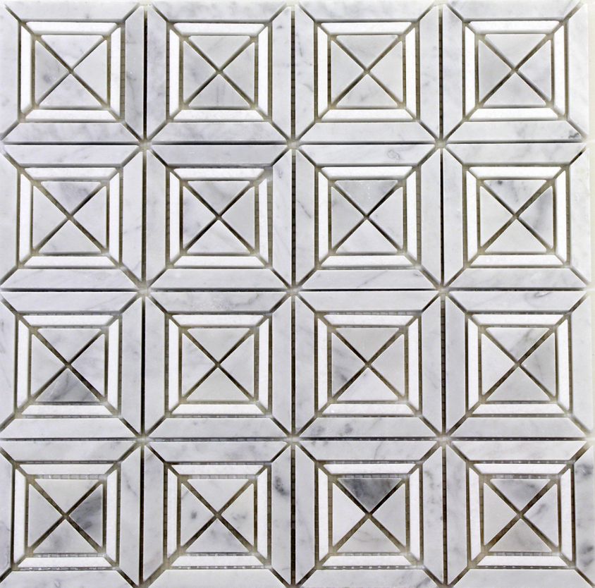 This White Carrara Matte X Styles Stone Square Marble Mosaic Wall Floor Tile adds a luxurious look to any space. Its mosaic pattern of square carrara marble tiles creates stunning visual interest and texture. The tiles are made of high-grade natural marble for durability and easy maintenance.