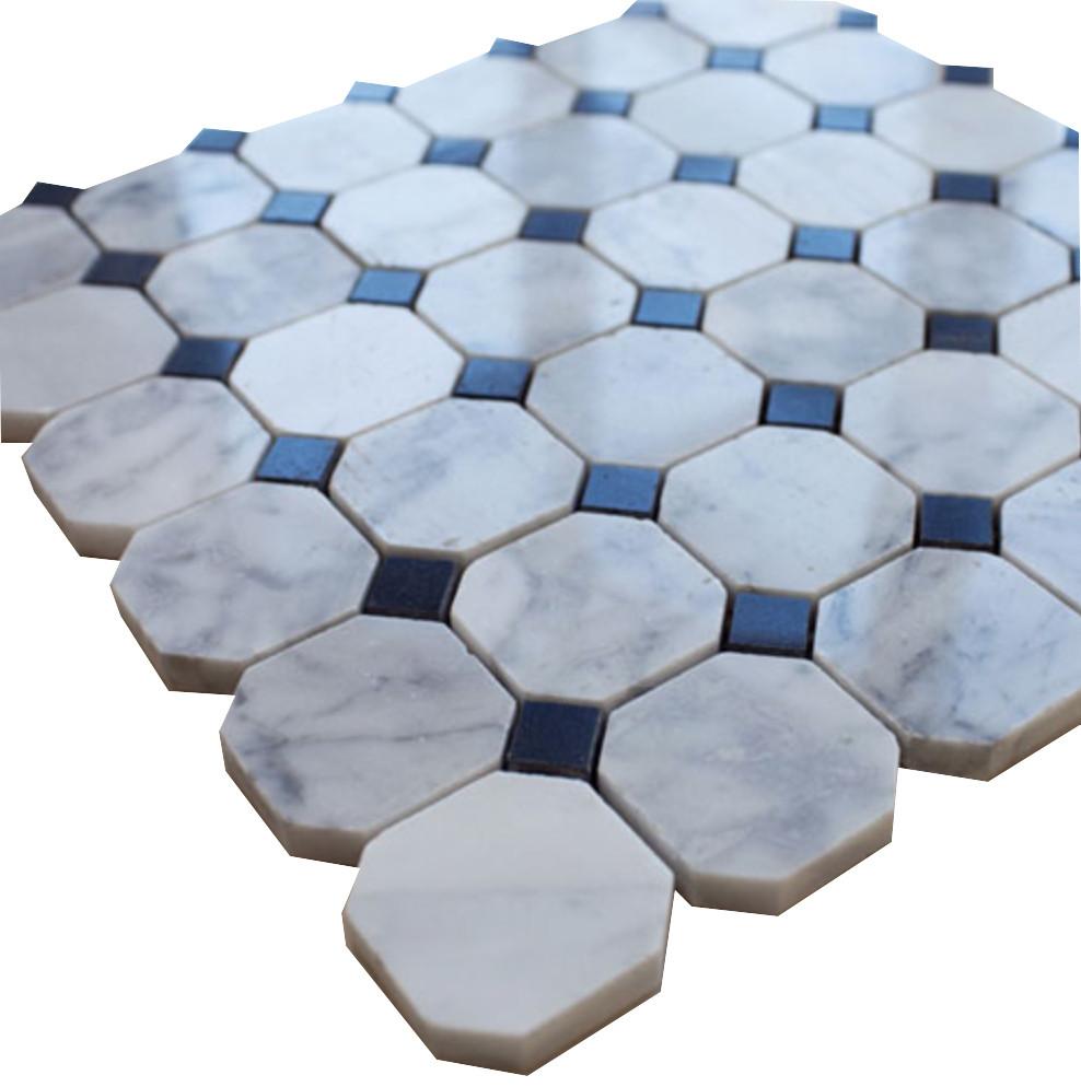 White Carrara Octagon with Black Dots Stone Tile Mosaics