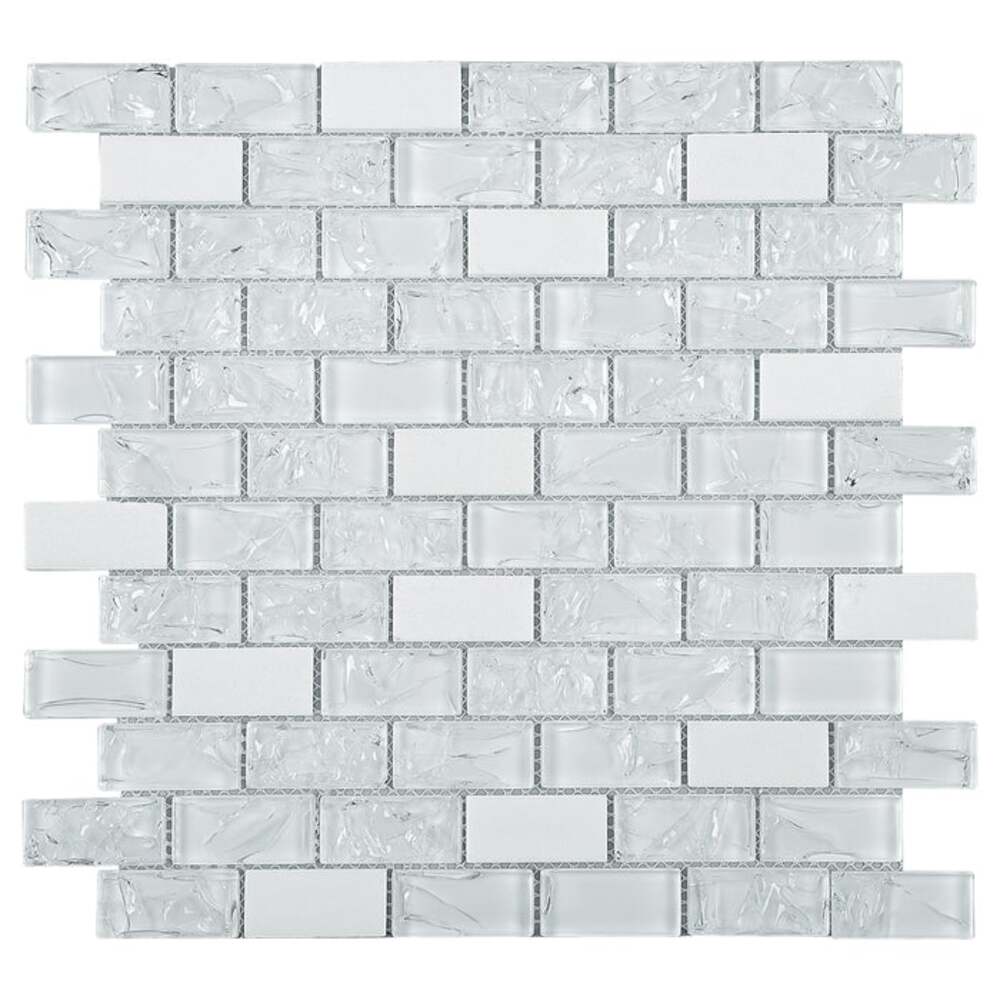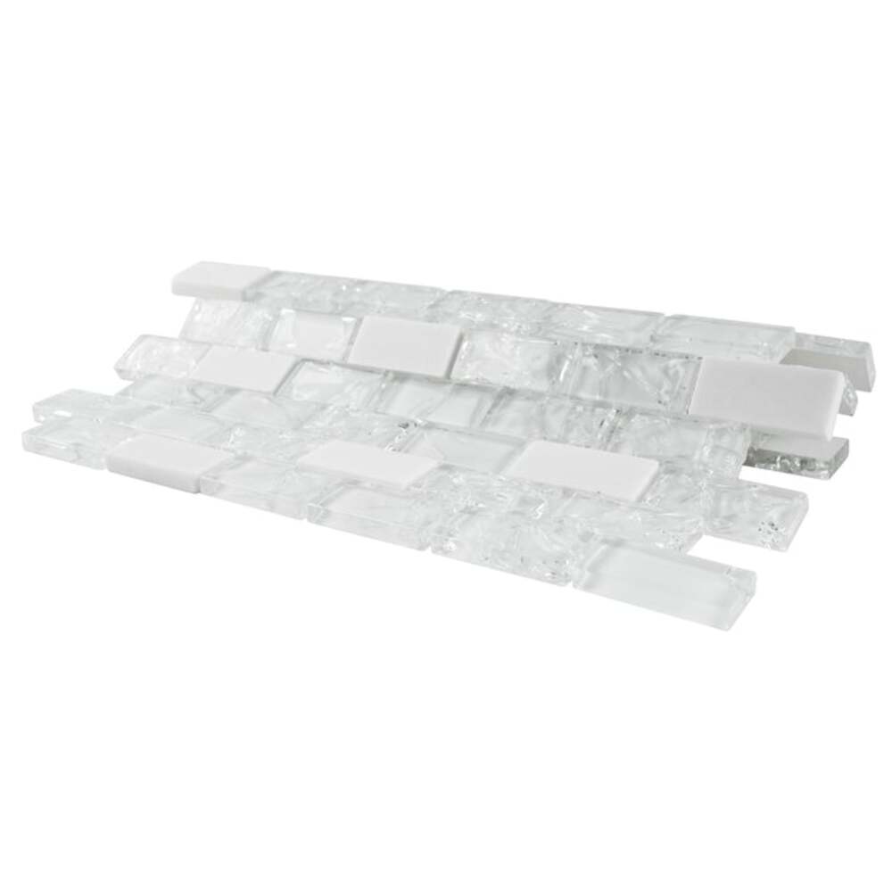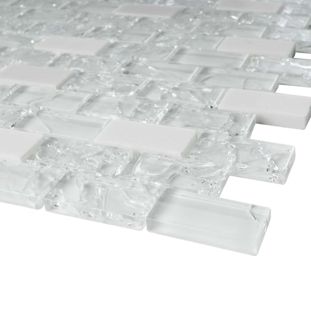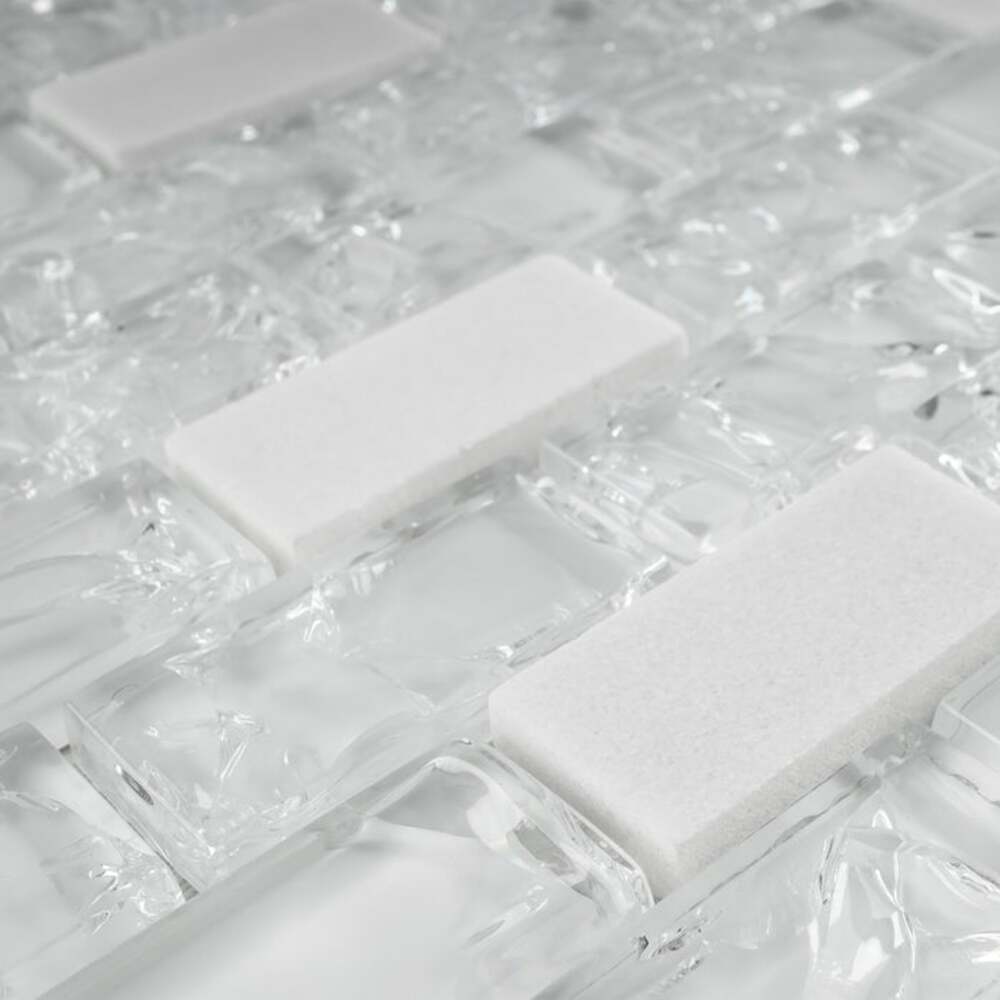 White Crackle Glass and Bianco Marble Mosaic Tiles