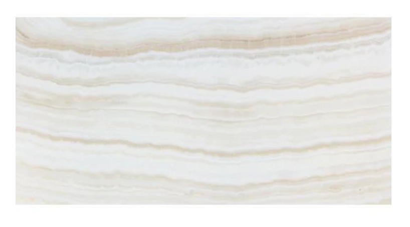 White Onyx is a beautiful natural stone with wide variations featuring a white icy background and veins of golds and grays. This white tile is recommended for indoor applications, including countertops and backsplashes, as well as for outdoor applications in climates where freezing does not occur.