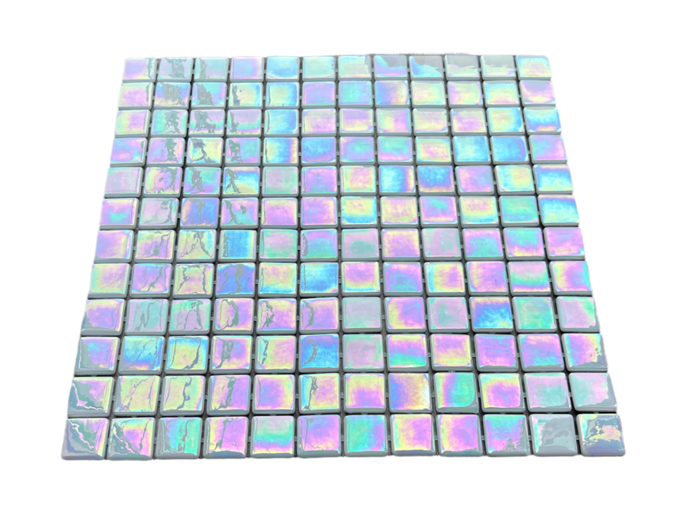 • Square Size: 0.9" - Material: Recycled Glass - Sold by Box of 10 Sheets ( Total coverage 10 Sqft)